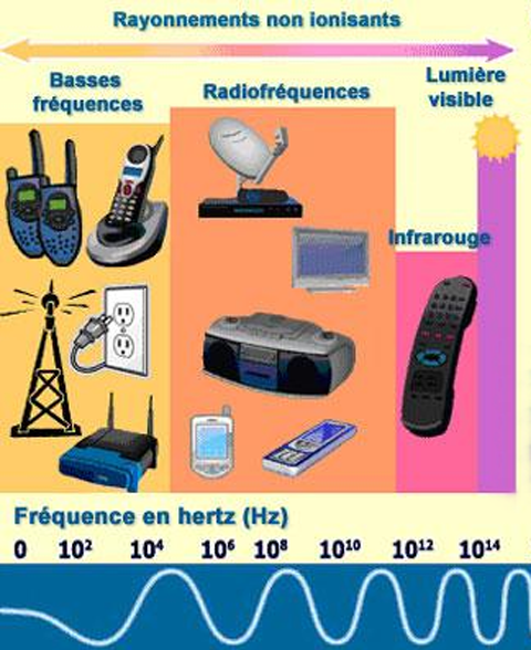 Les ondes utilisant de telles fréquences sont les ondes radio, elles se propagent dans les milieux conducteurs (câbles, composants ...) mais aussi dans l'espace environnant.