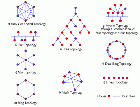 Il existe différentes topologies de réseaux : maillé, en bus, en anneau, en étoile ...